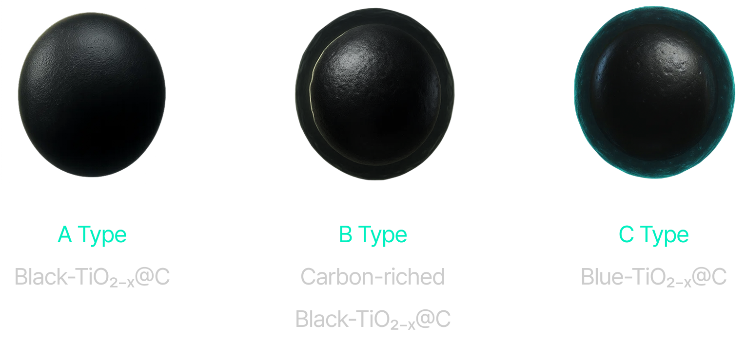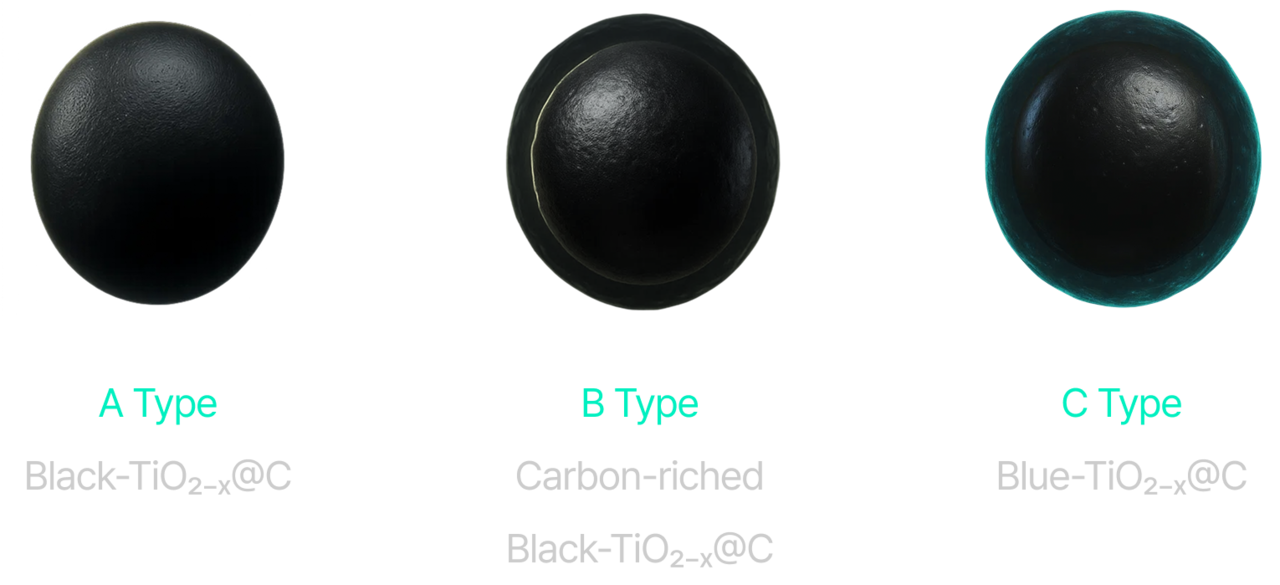Unlike conventional Titanium dioxide(TiO₂), which shows photocatalytic activity only under Ultraviolet(UV) light, Black TiO₂ is designed to exhibit high catalytic activity even under sunlight and indoor visible light conditions.